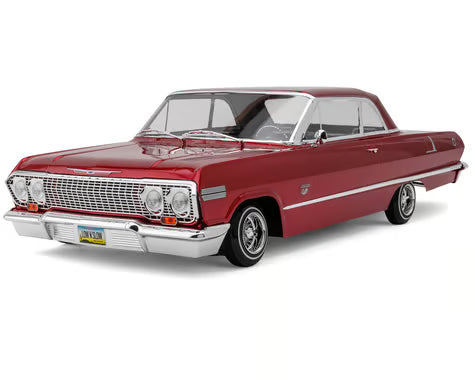The Redcat Sixty Three Chevrolet Impala SS Classic 63 edition is a 1:10 scale, ready-to-run RC lowrider inspired by the iconic 1963 Chevy Impala SS 2-door hardtop. It features magnetic body mounts, an upgraded hopping bellcrank, enhanced servos, black suspension links, redesigned rims, tires, and comes in three color options. Since its launch in November 2020, the Sixty Three has become a hit among automotive and lowrider enthusiasts, delivering exceptional detail and functionality with a six-channel radio, battery, and charger included